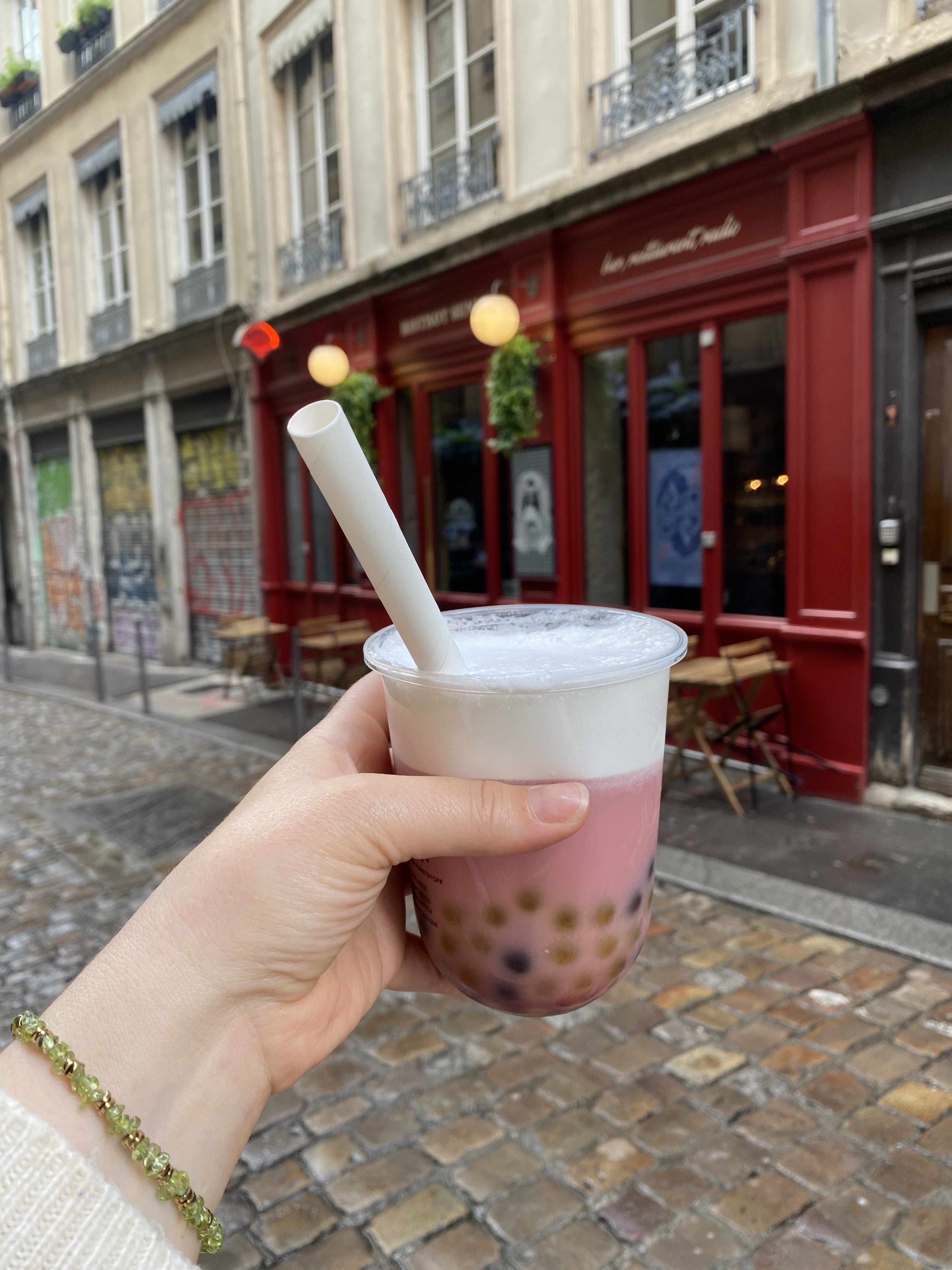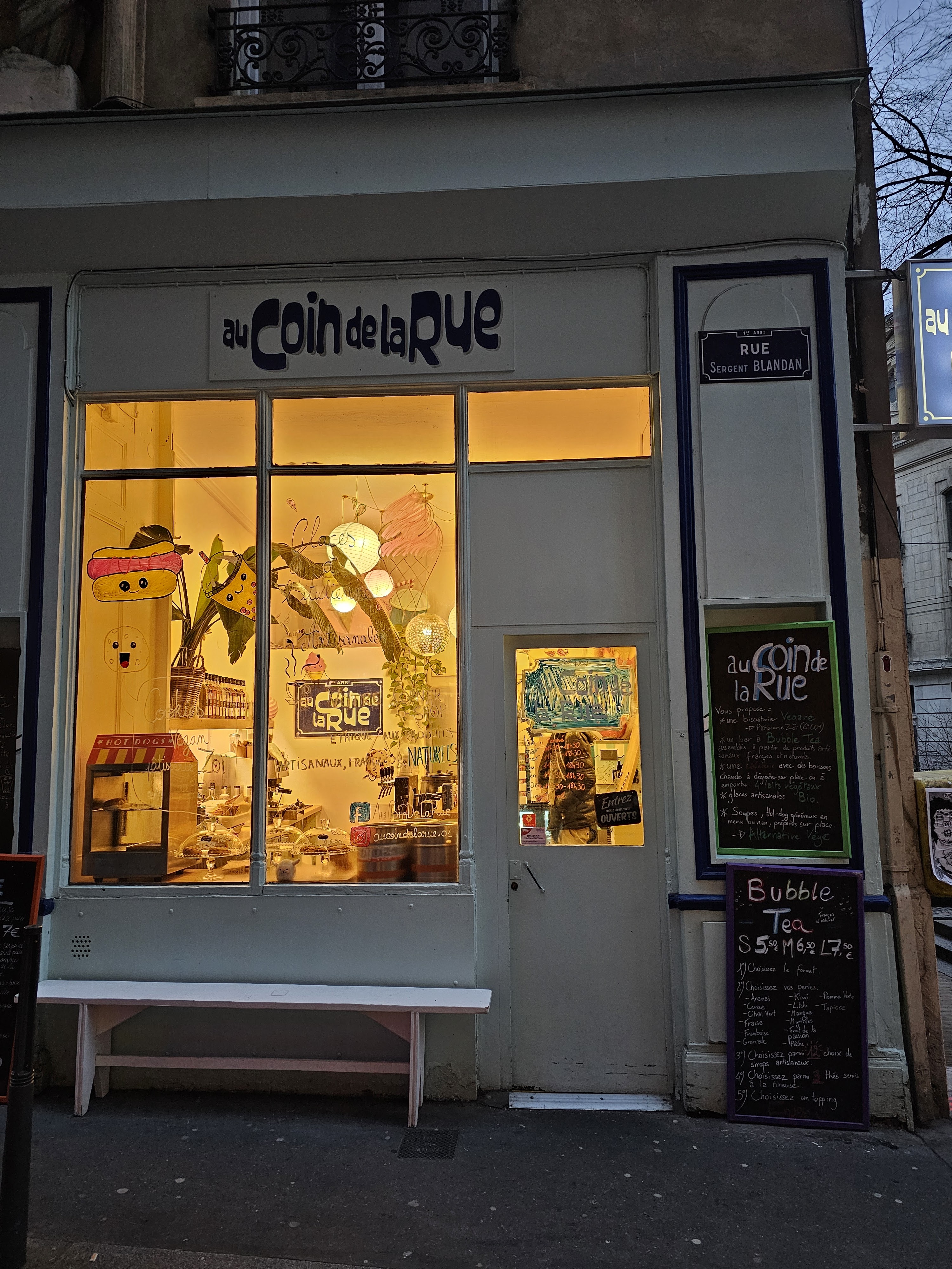 De Lyon au Monde, bienvenue dans l'un des bars/cafés les plus sympathiques que vous aurez l'occasion de visiter ! En tant que maniaques du bubble tea, nous essayons toujours de nous surprendre en visitant les magasins locaux qui créent ces boissons fantastiques. Nous sommes allés à Lyon pour un week-end, et Au Coin De La Rue est apparu comme une suggestion lors d'une visite dans le quartier. L'espace est extrêmement confortable, mais la boisson principale de l'espace est le propriétaire : un incroyable conférencier, rêveur et passionné, avec beaucoup d'énergie qui vous donne envie de boire. Et nous avons littéralement sauté dans la vague et l'avons surfée : les bubble teas sont fabriqués sur mesure et vous pouvez créer votre propre boisson personnalisée. Avec quelques suggestions au milieu, nous avons notre propre bubble tea matcha chaud personnalisé, avec du sirop de framboise et des bulles de tapioca : c'était extraordinaire ! Et pour encore mieux : les prix sont vraiment justes, comparés aux autres bubble tea. Merci, merci et obrigado!! Nous avons vraiment adoré !
