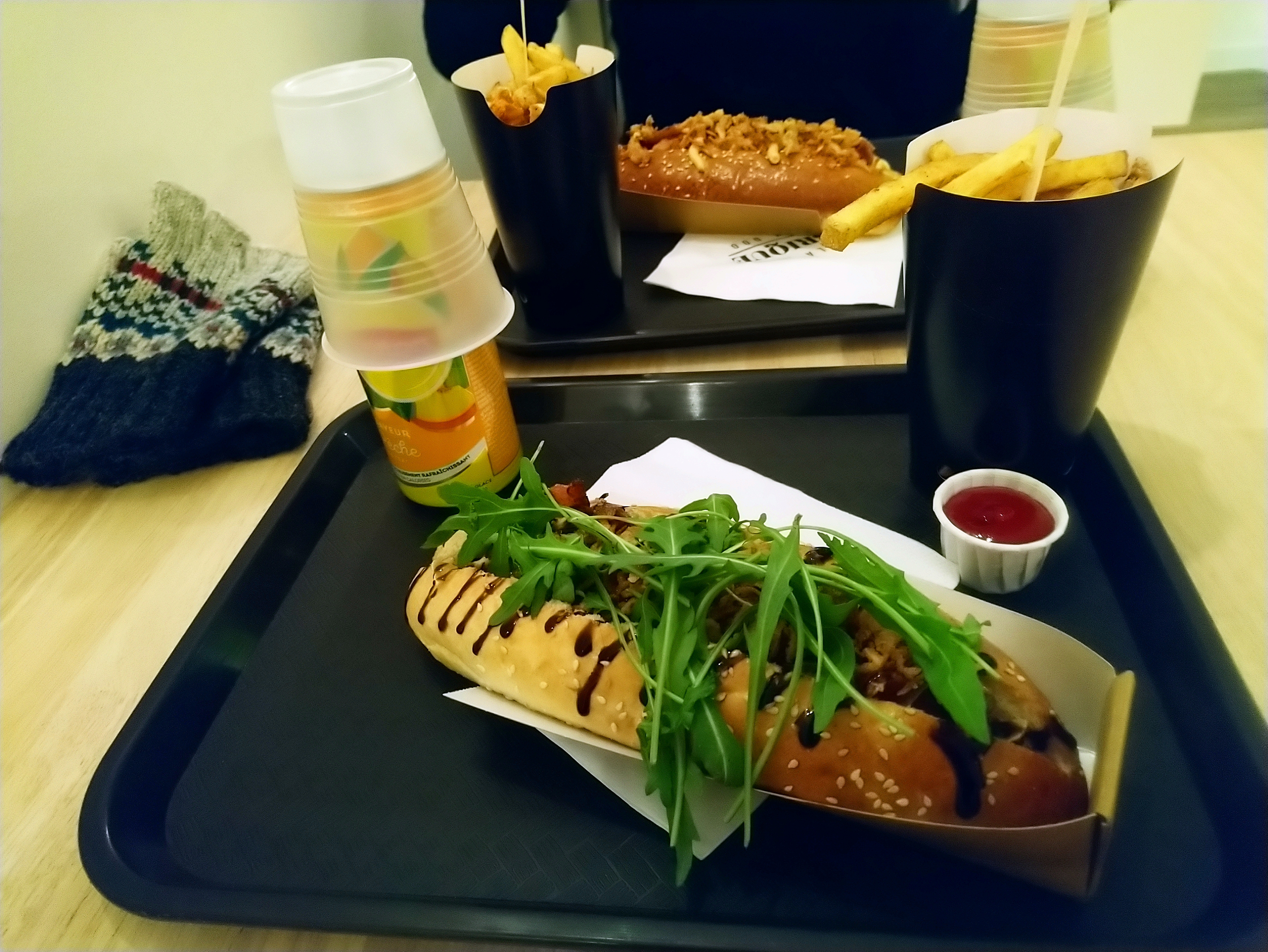 Des saucisses sans saveur, des frites molassonnes et beaucoup de plastic. Une fois suffit.