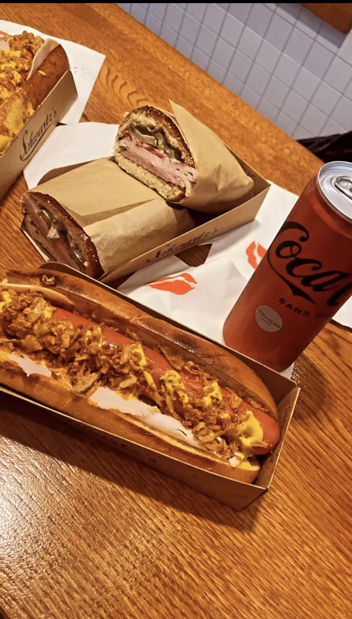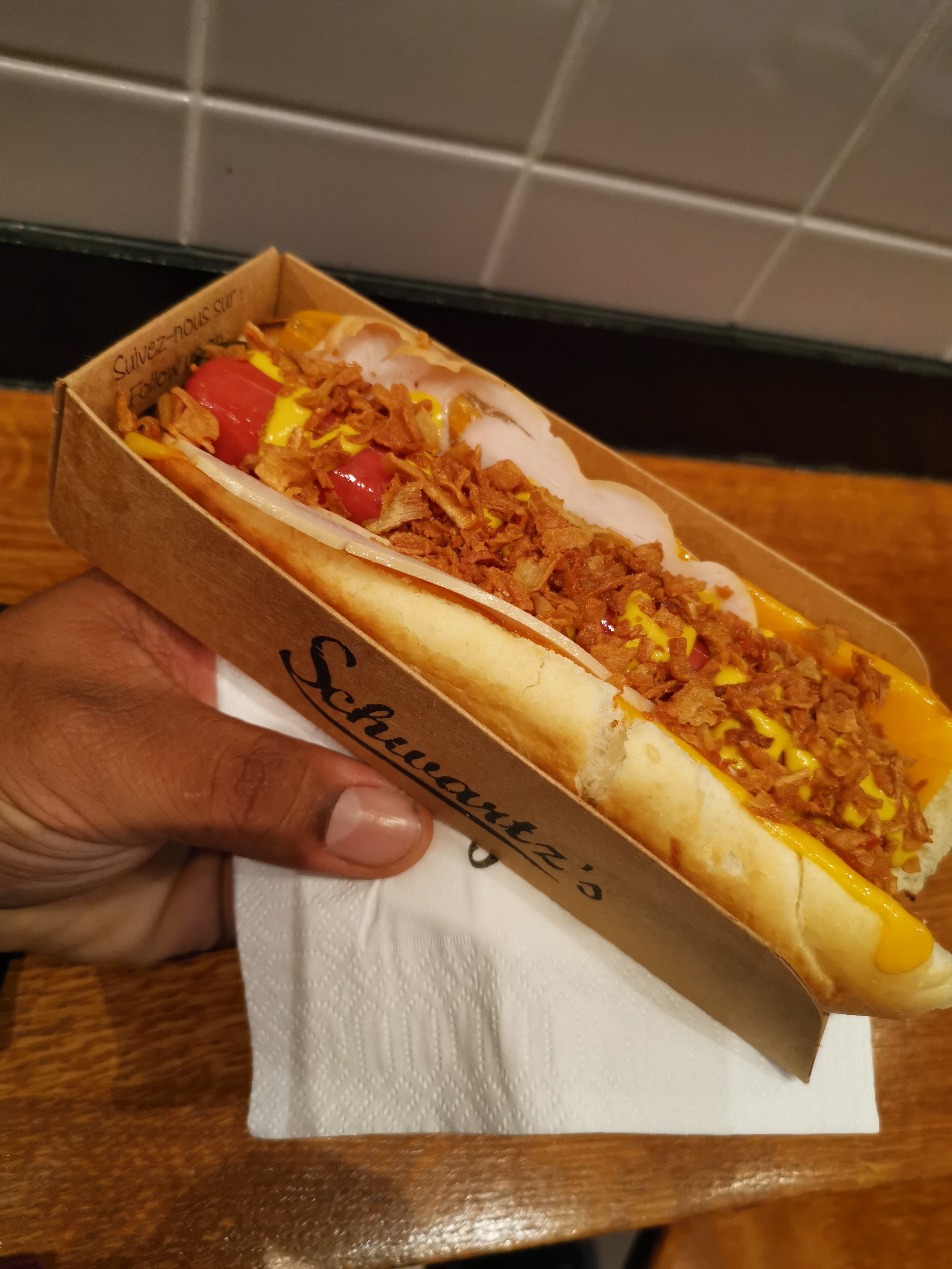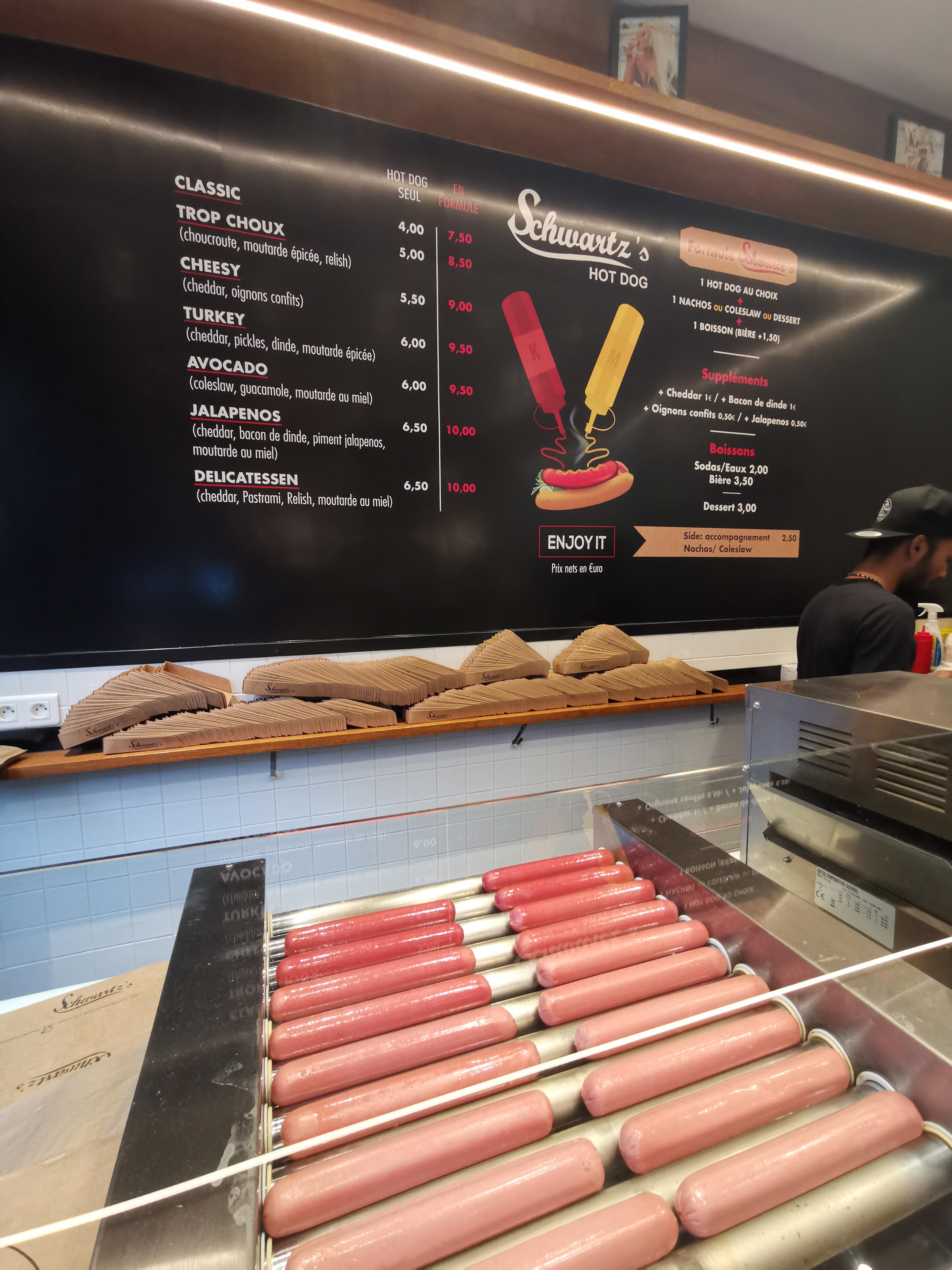 C'est très moyen tout de même 🤔 Schwartz nous a habitués à mieux avec ses hamburgers... Les hot-dogs sont bons mais sans réel plus, pas très généreux non plus, assez cher en plus. Lorsque vous avez des offres sur Uber ou Deliveroo ça peut valoir le prix, Comptez entre 8 ou 9 euros pour un hot dog classique et le prix descend à 5 ou 6 lorsqu'il y a des offres intéressantes ! Voilà 😊 @LVS.kid