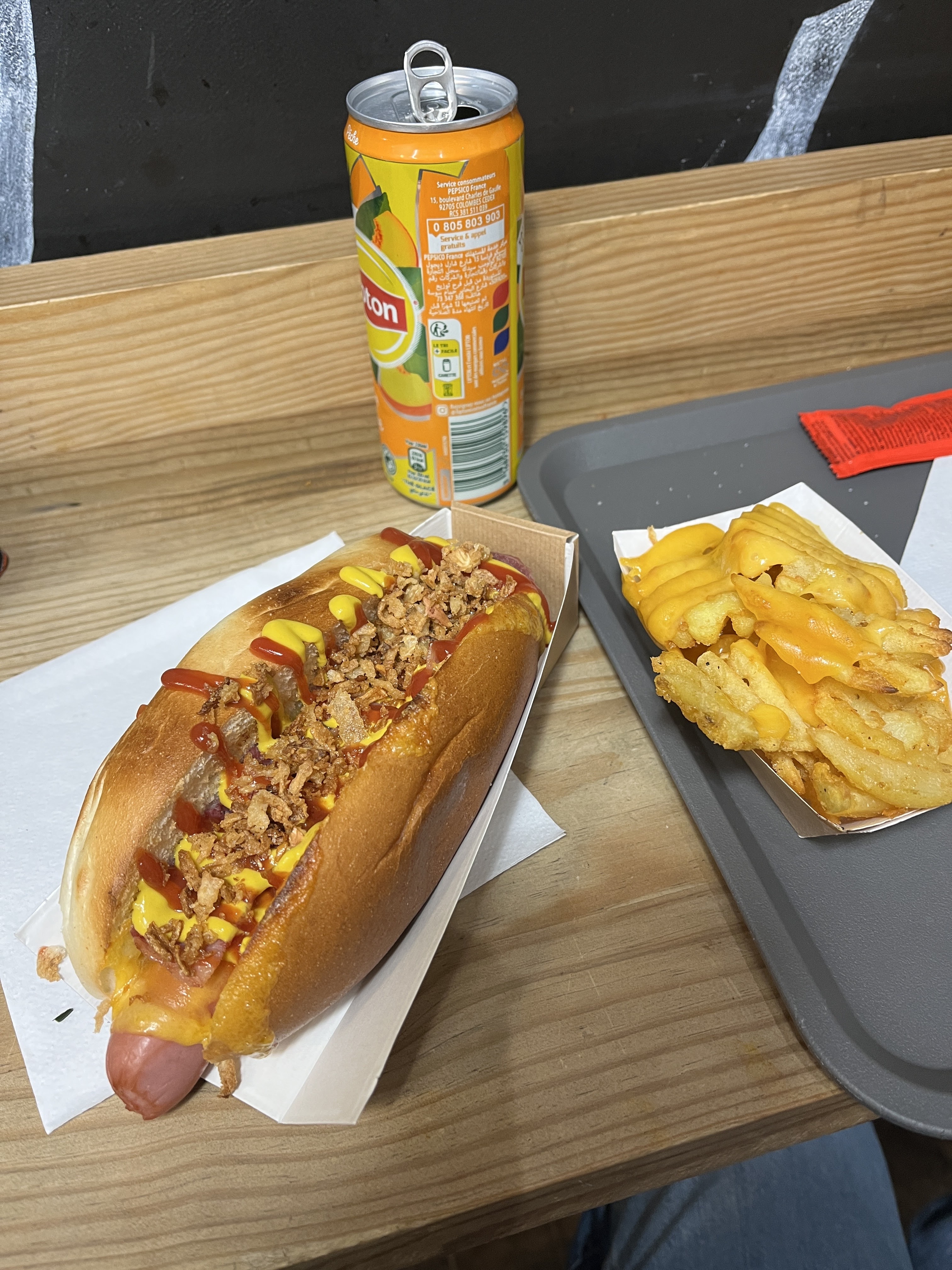Bon hot dog avec un choix sympa de recettes. Desserts maison, Pas de frites mais un accompagnement malin compte tenu du matériel, Pour avoir un 5/5 on aurait aimé avoir plus d’infos sur les provenances produits (pains, fromage, saucisse…) et des sauces maisons Ça fait le job